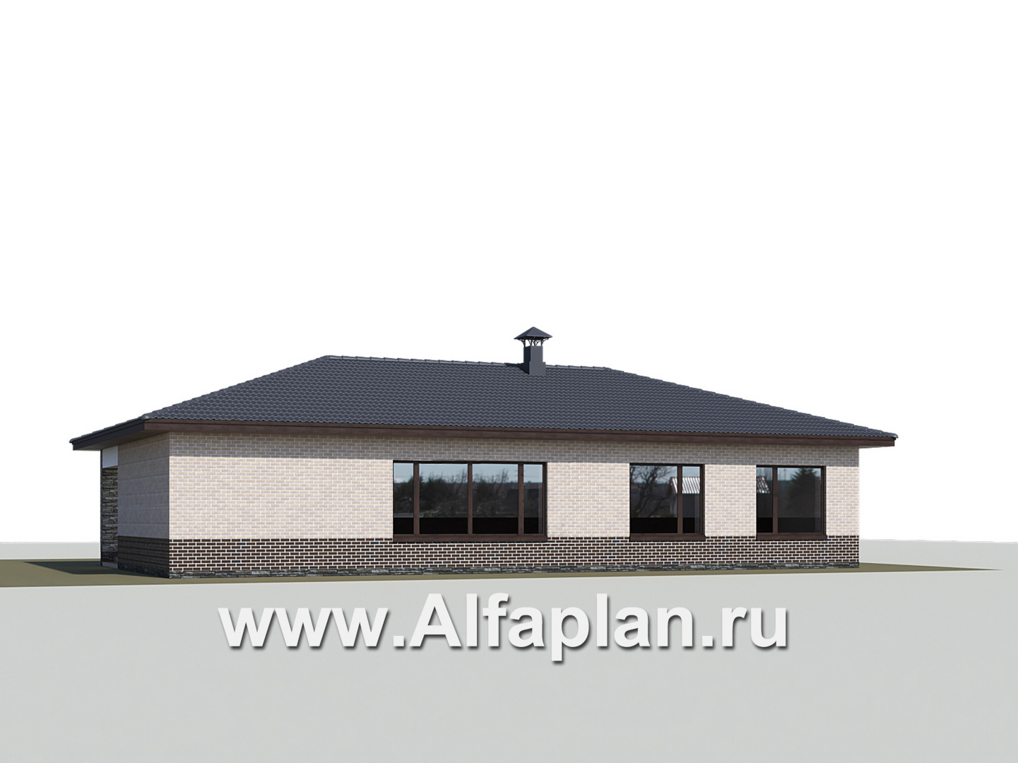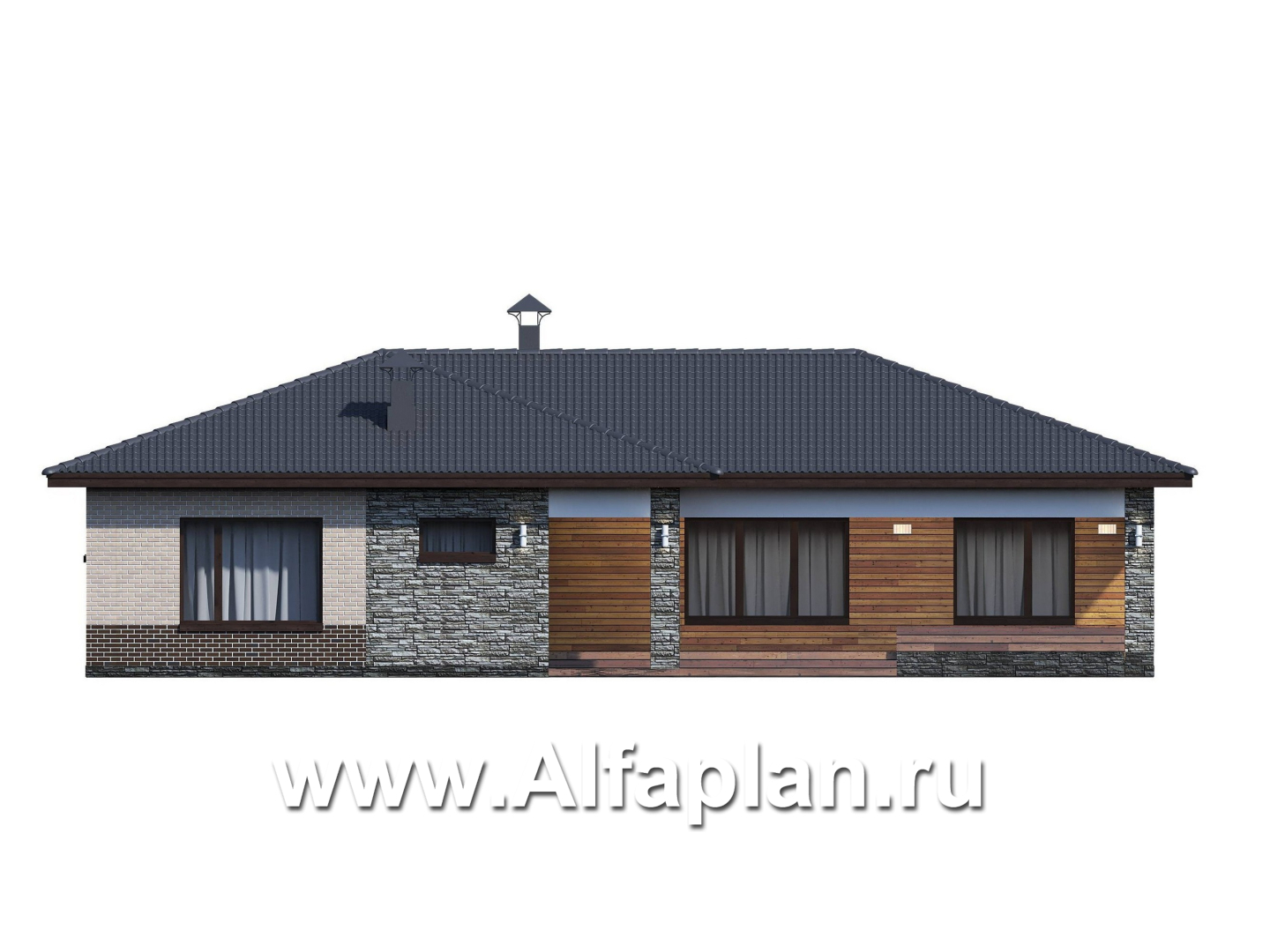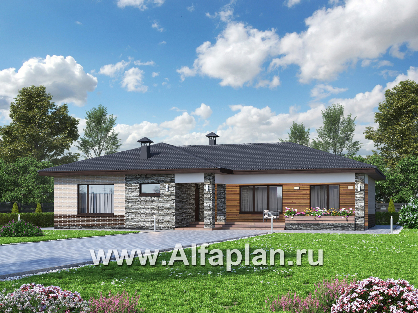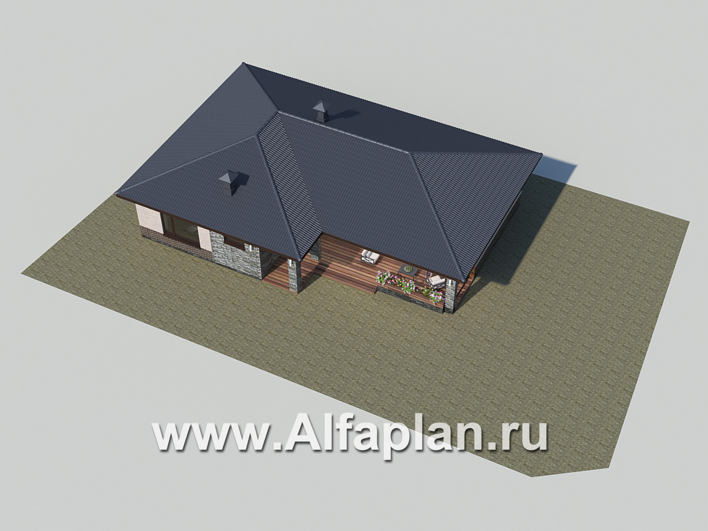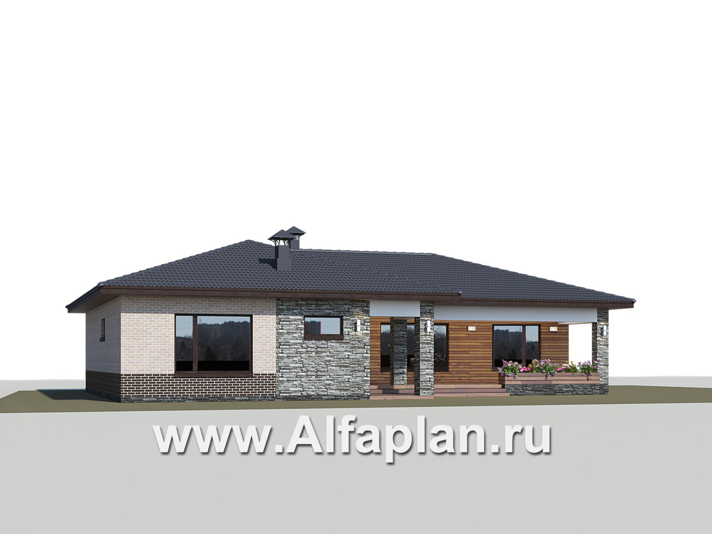 «Алазея» - проект одноэтажного дома из газобетона, с террасой, 3 спальни и кабинет, в современном стиле
