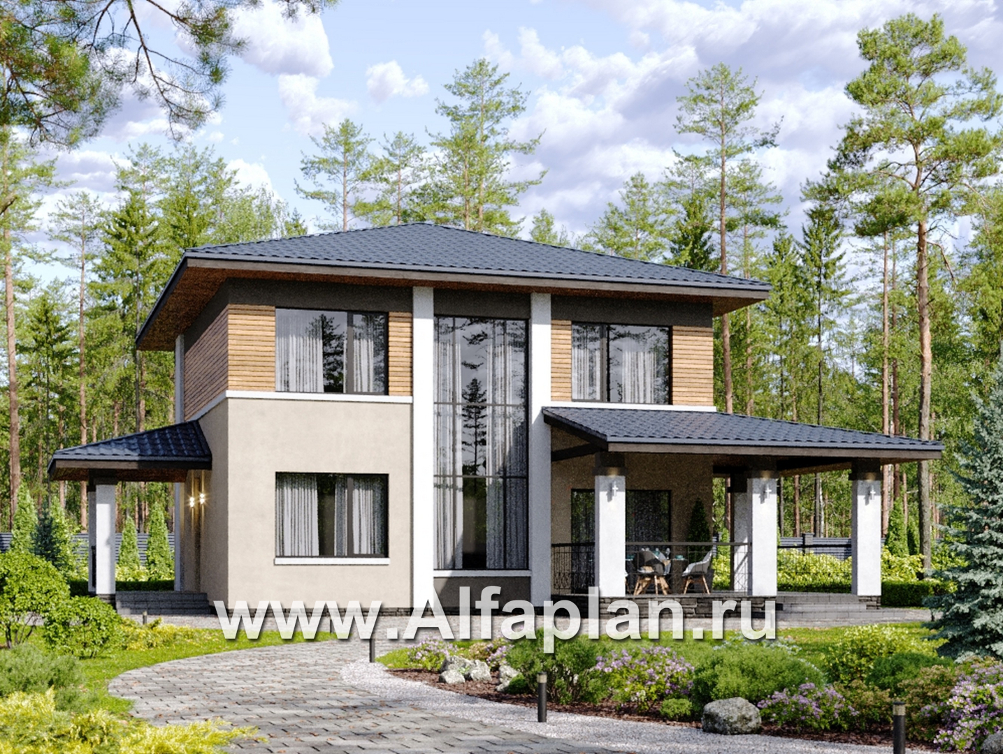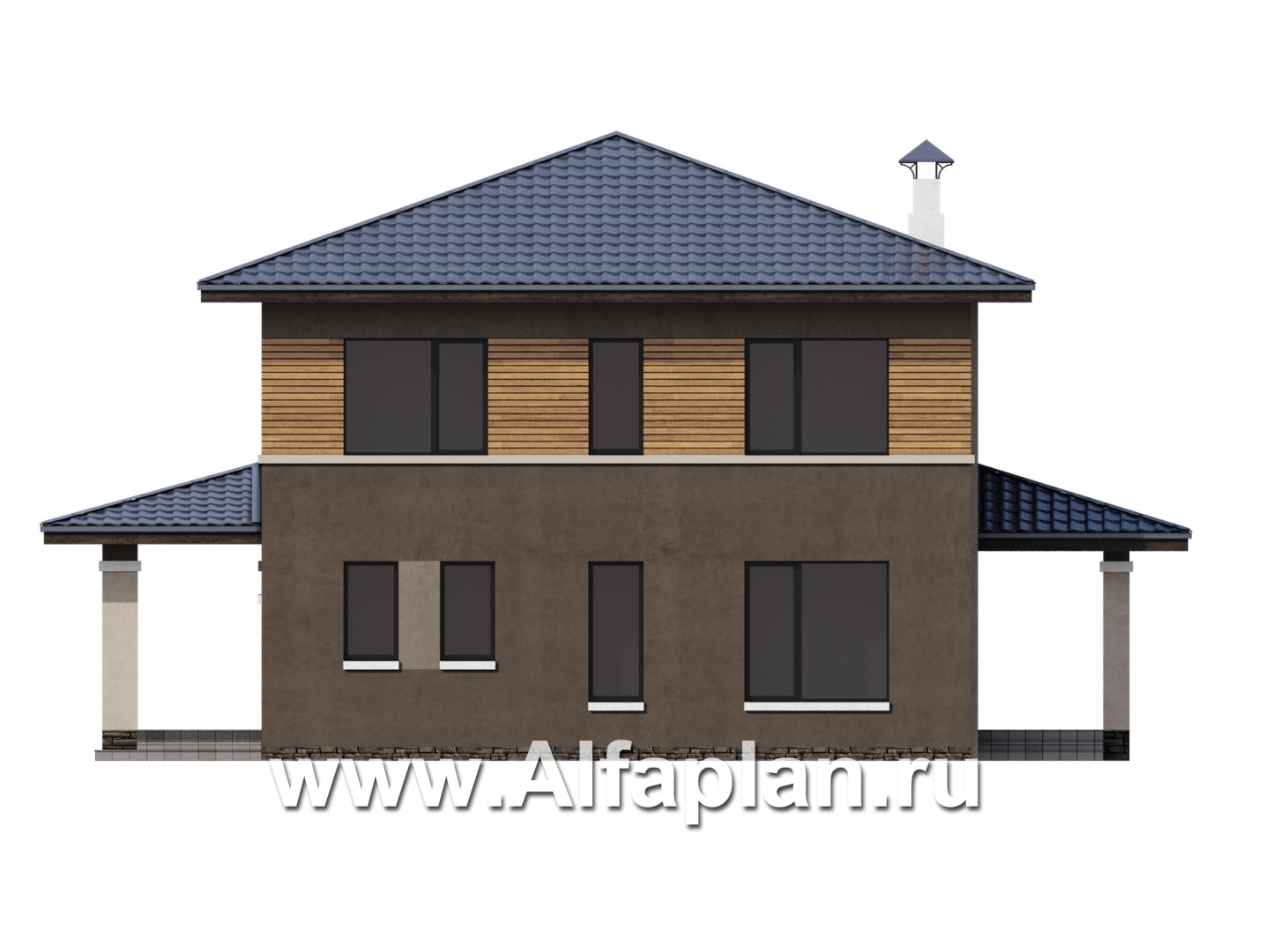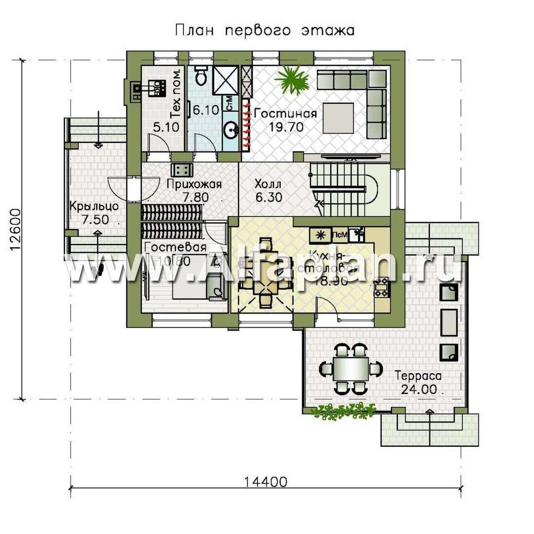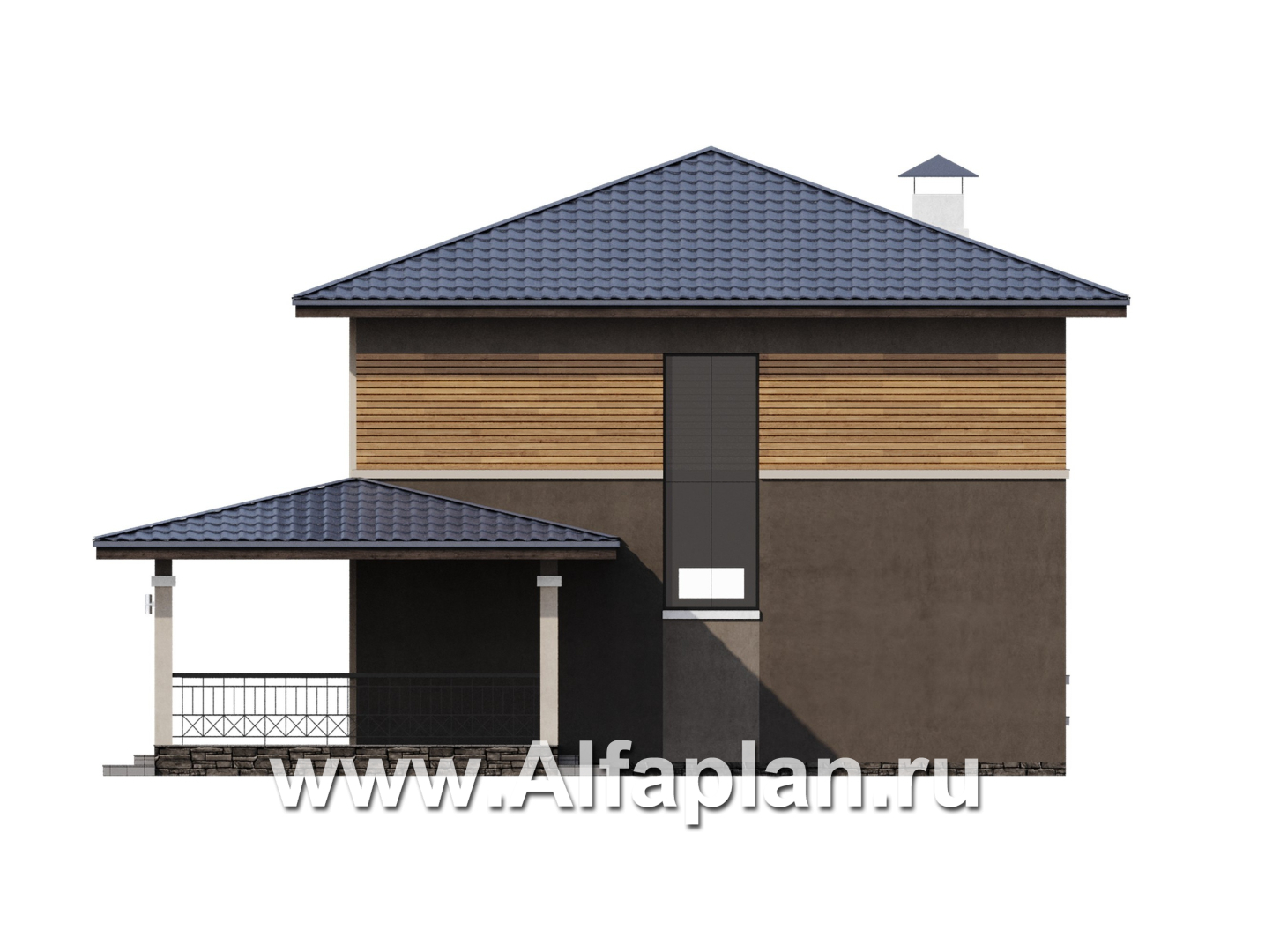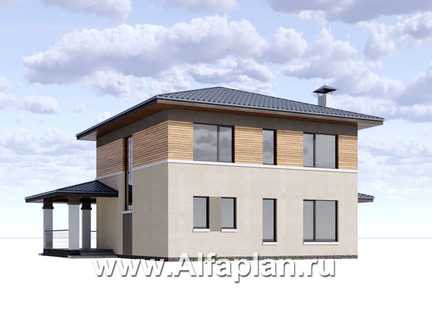 «Юта» - проект двухэтажного дома из кирпича, со вторым светом в столвой, с террасой, в стиле Райта