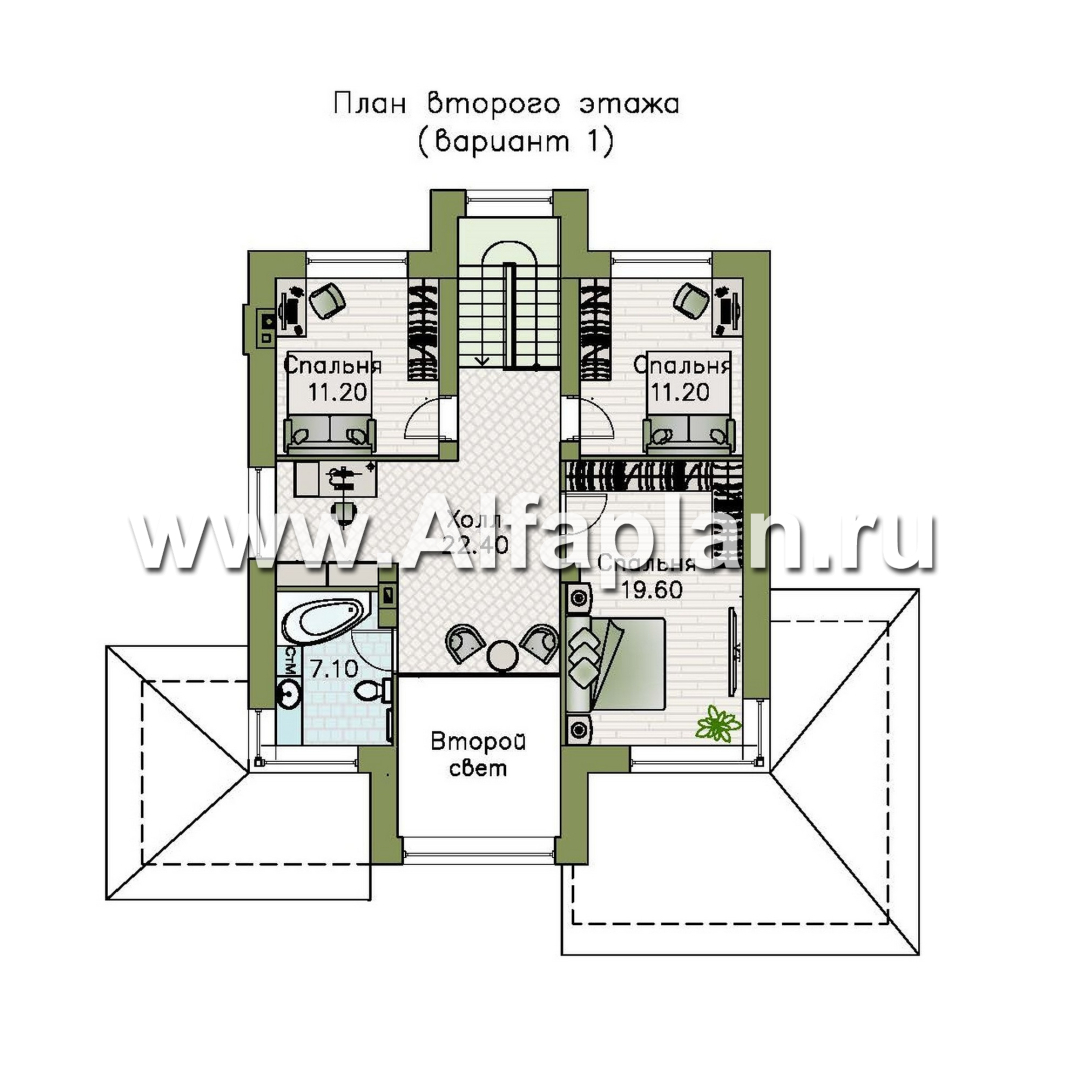 «Монтана» - проект двухэтажного дома из кирпича, со вторым светом и с террасой, в стиле Райта