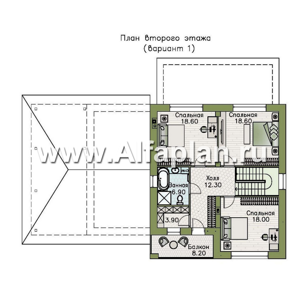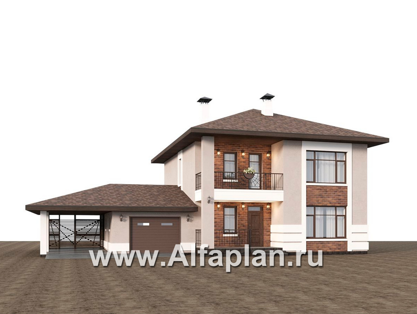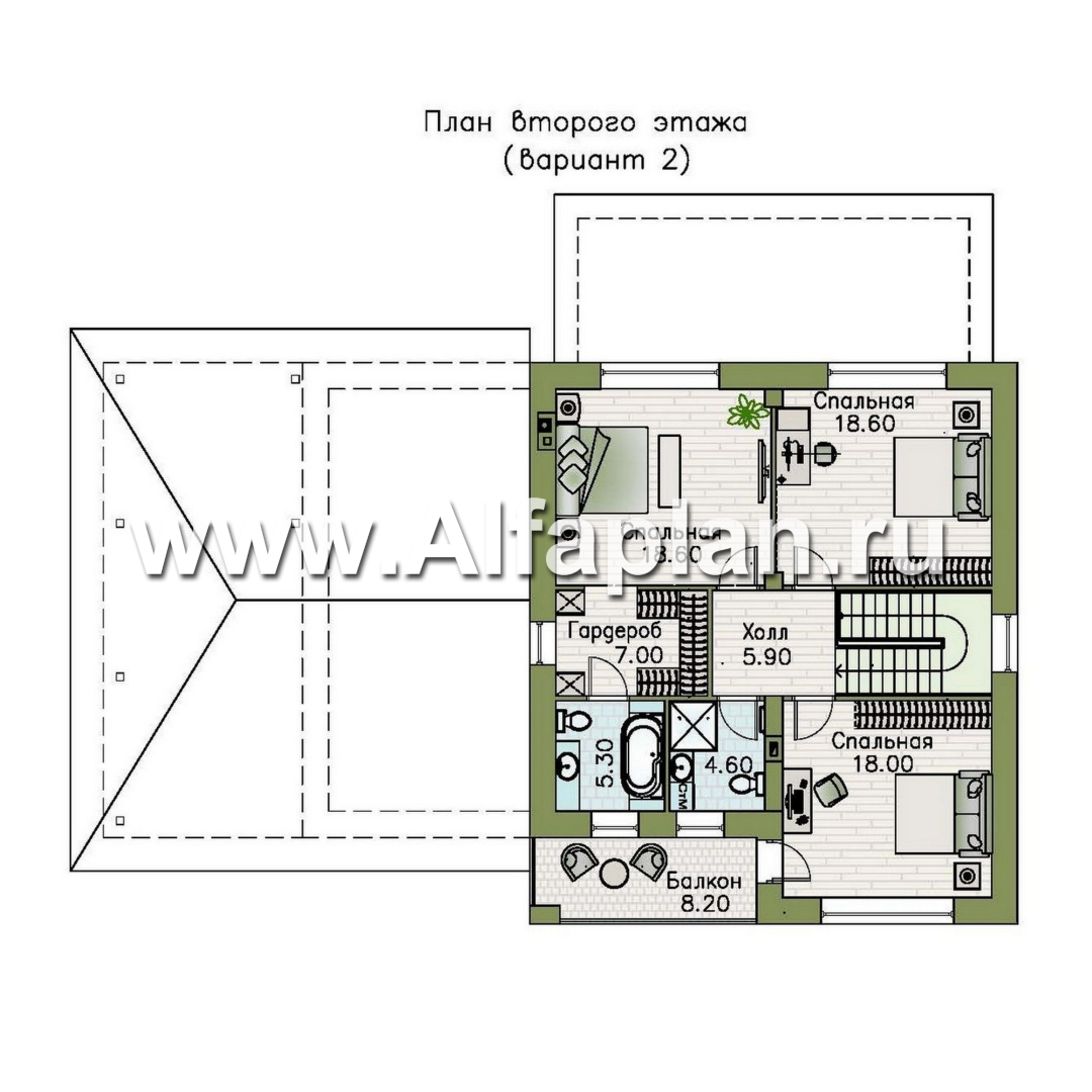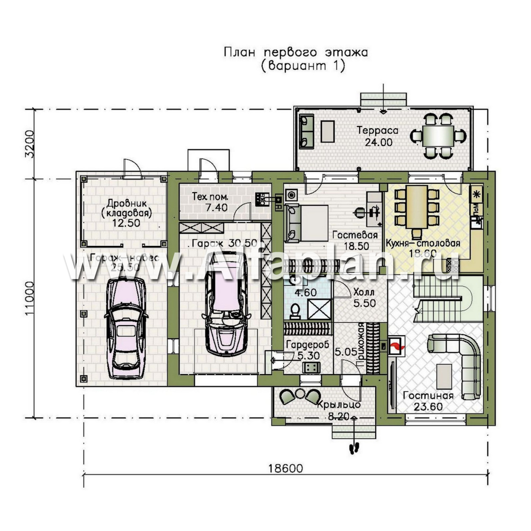 «Ладога» - проект двухэтажного дома из газобетона, с террасой, планировка с гаражом