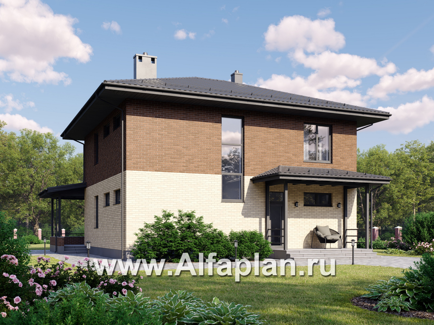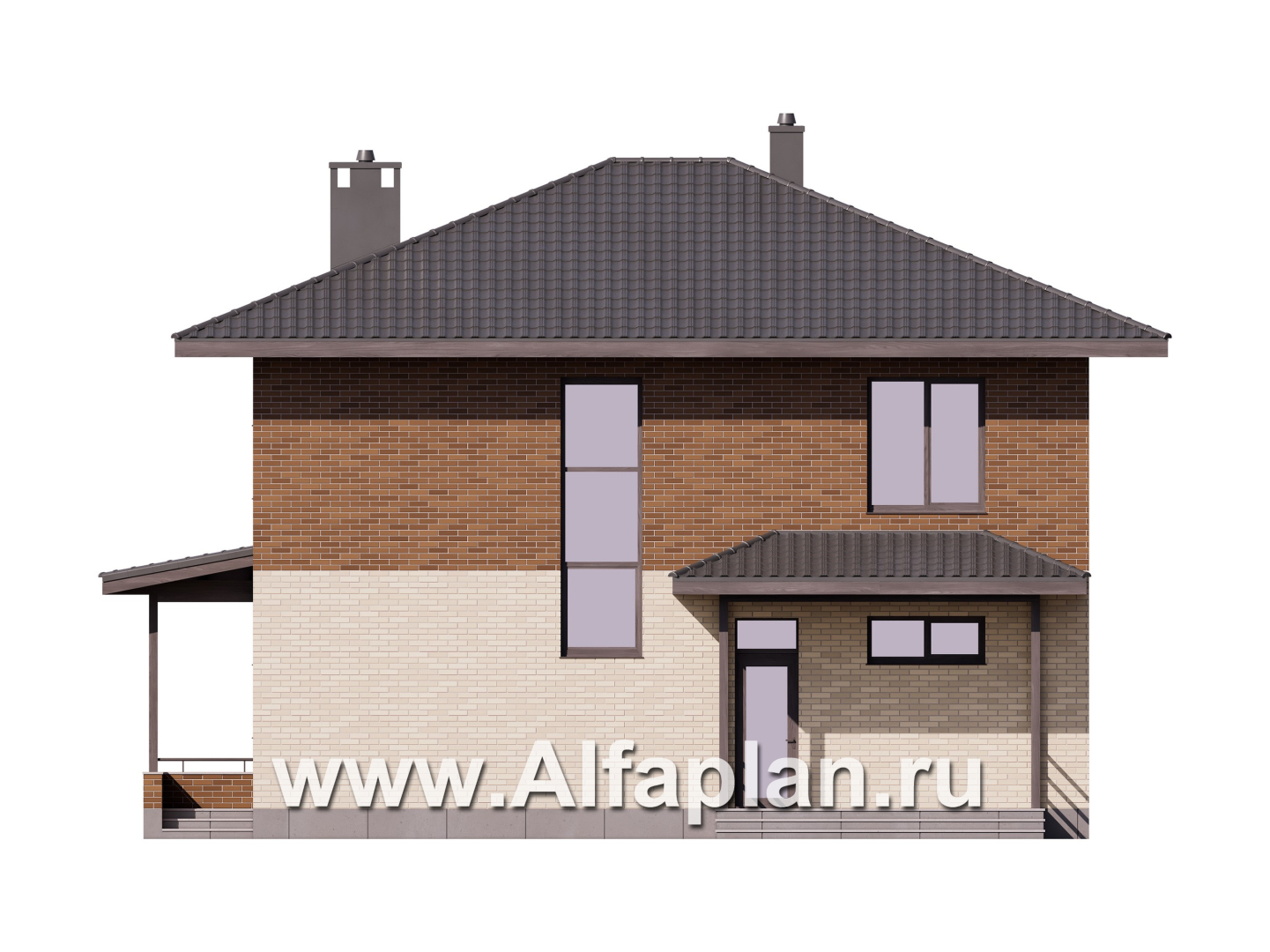 Проект двухэтажного дома из керамических блоков, ланировка в кабинетом на 1 эт, с террасой, в современном стиле