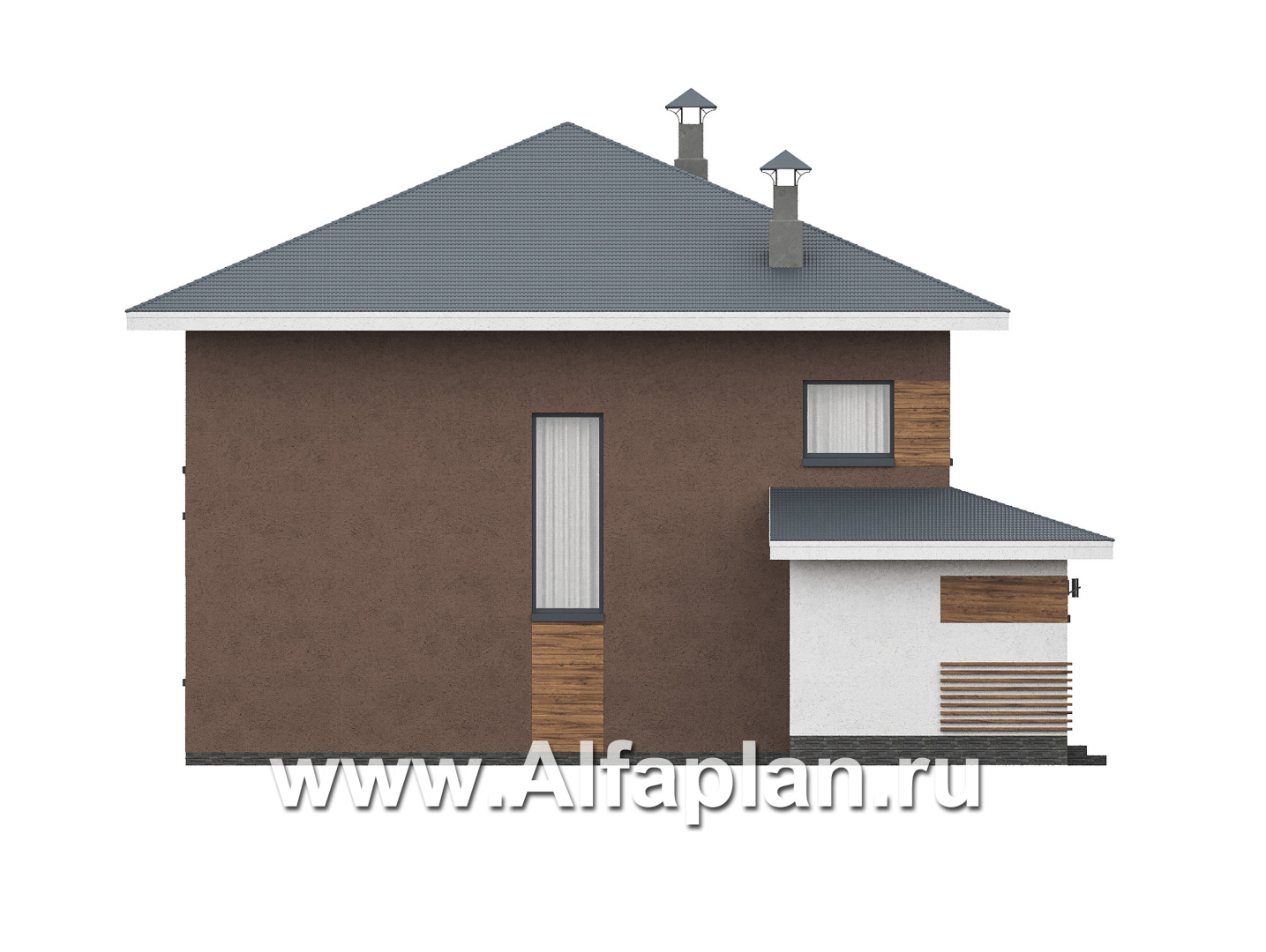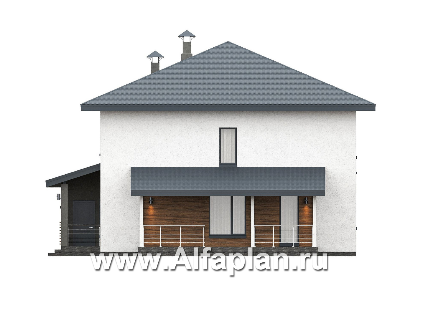1054B-S «Чистая линия» - проект дома, 2 этажа, с двусветной гостиной, с террасой, в современном стиле