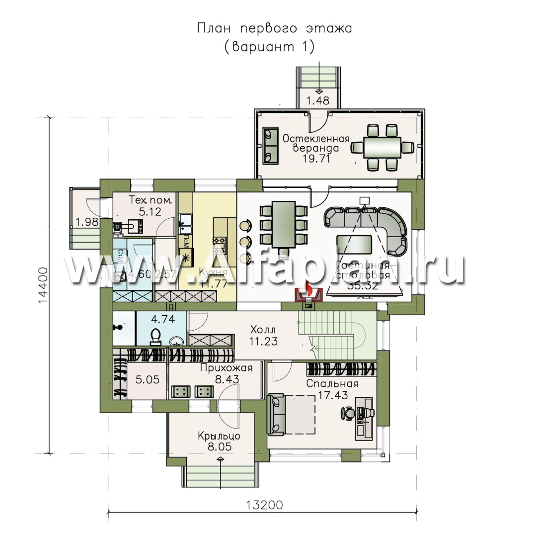 Габаритные размеры дома 13 м x 14 м