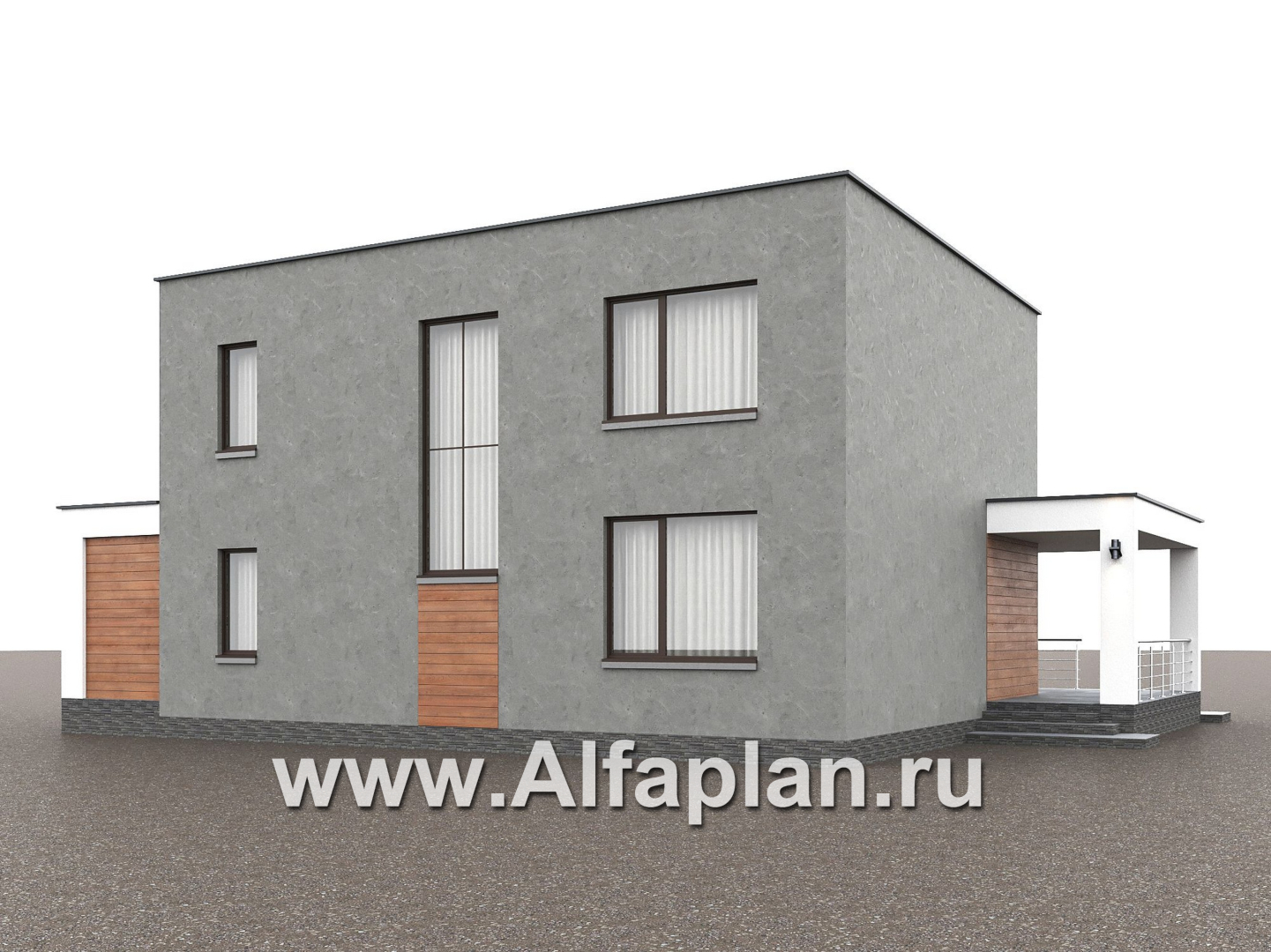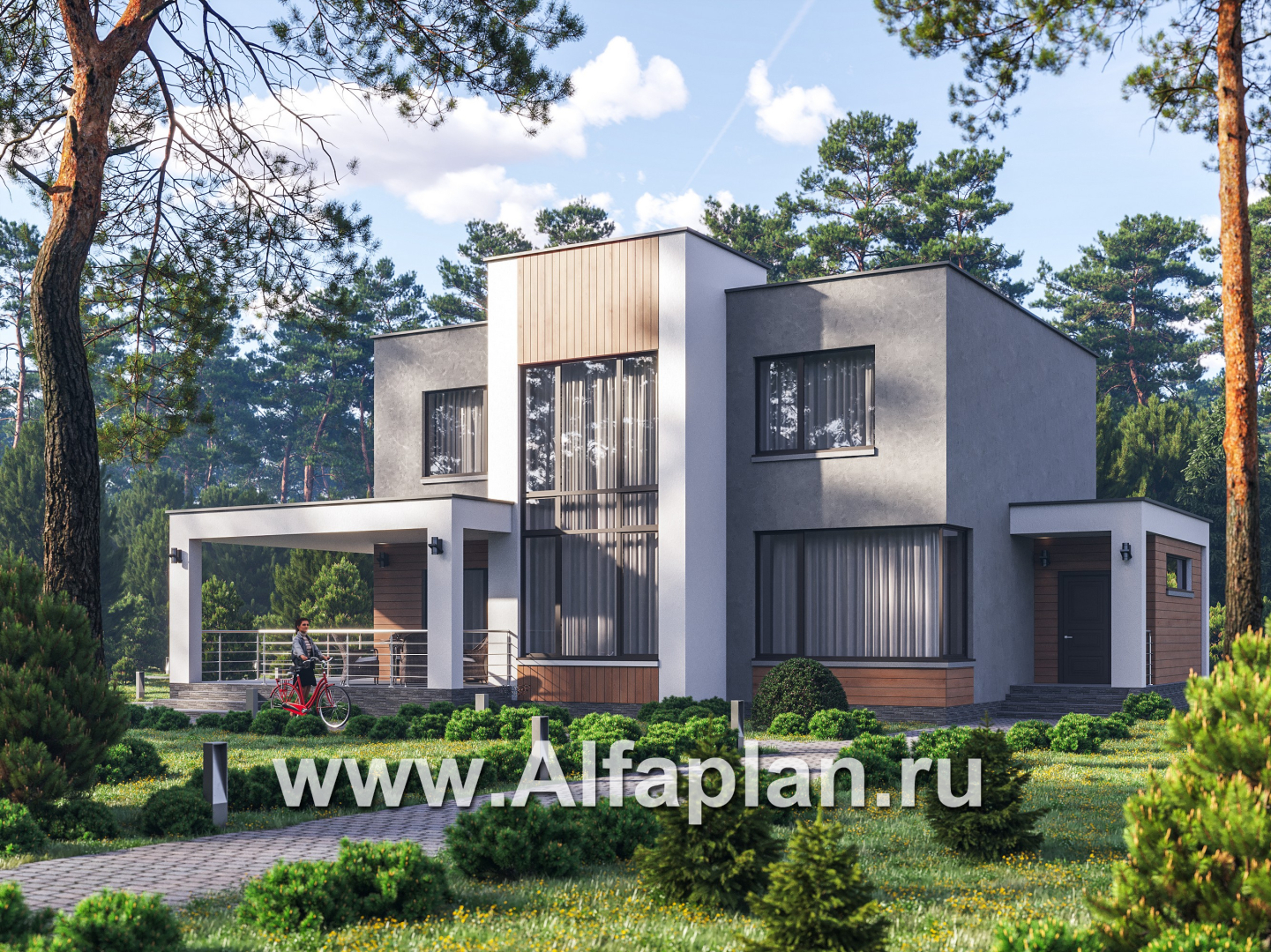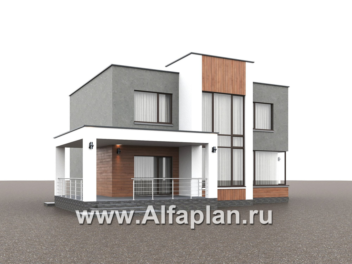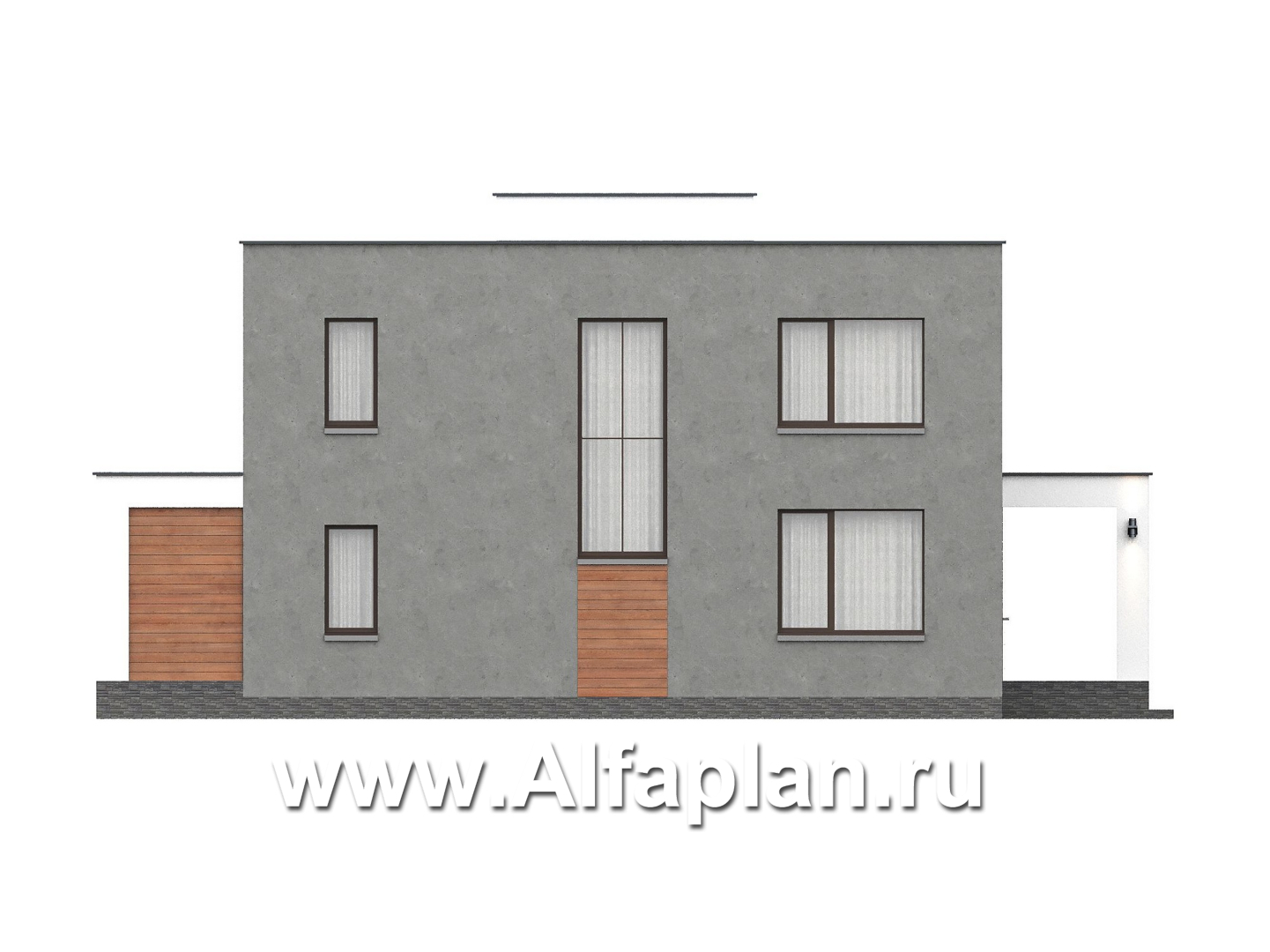 «Селектум» - красивый проект двухэтажного дома, планировка с мастер спальней, двусветная столовая, плоская крыша, в стиле минимализм