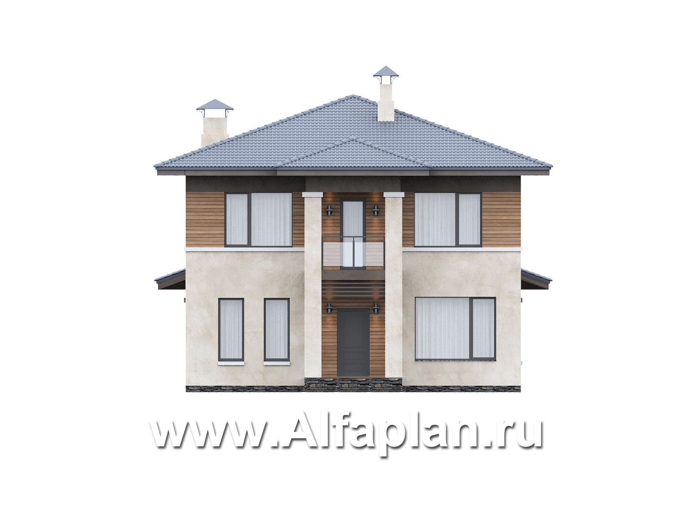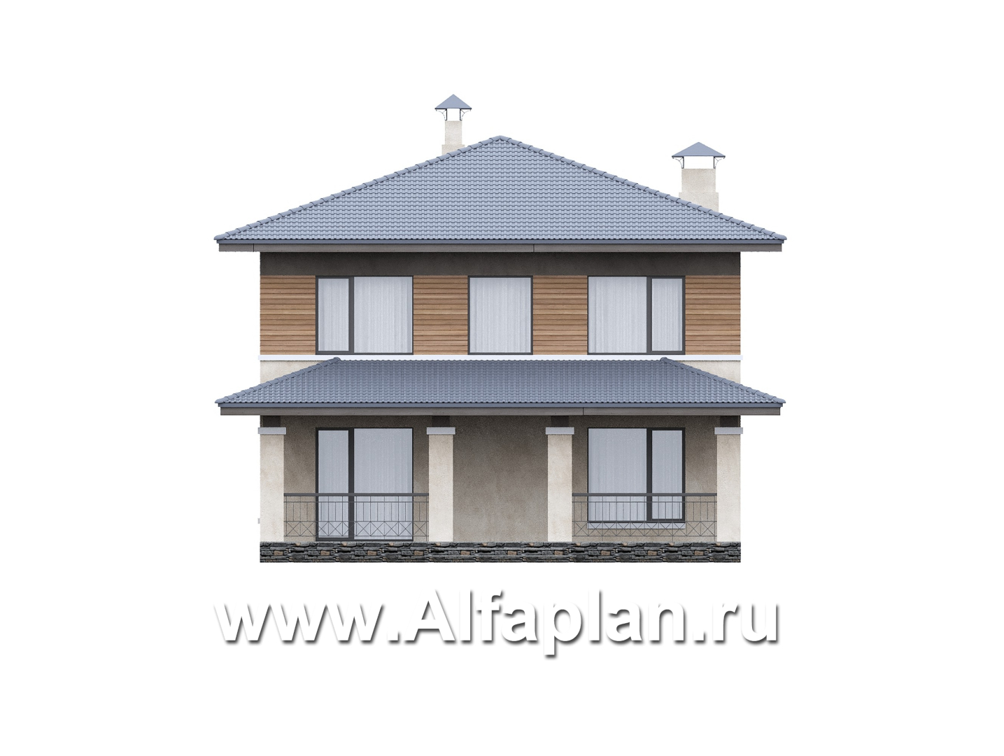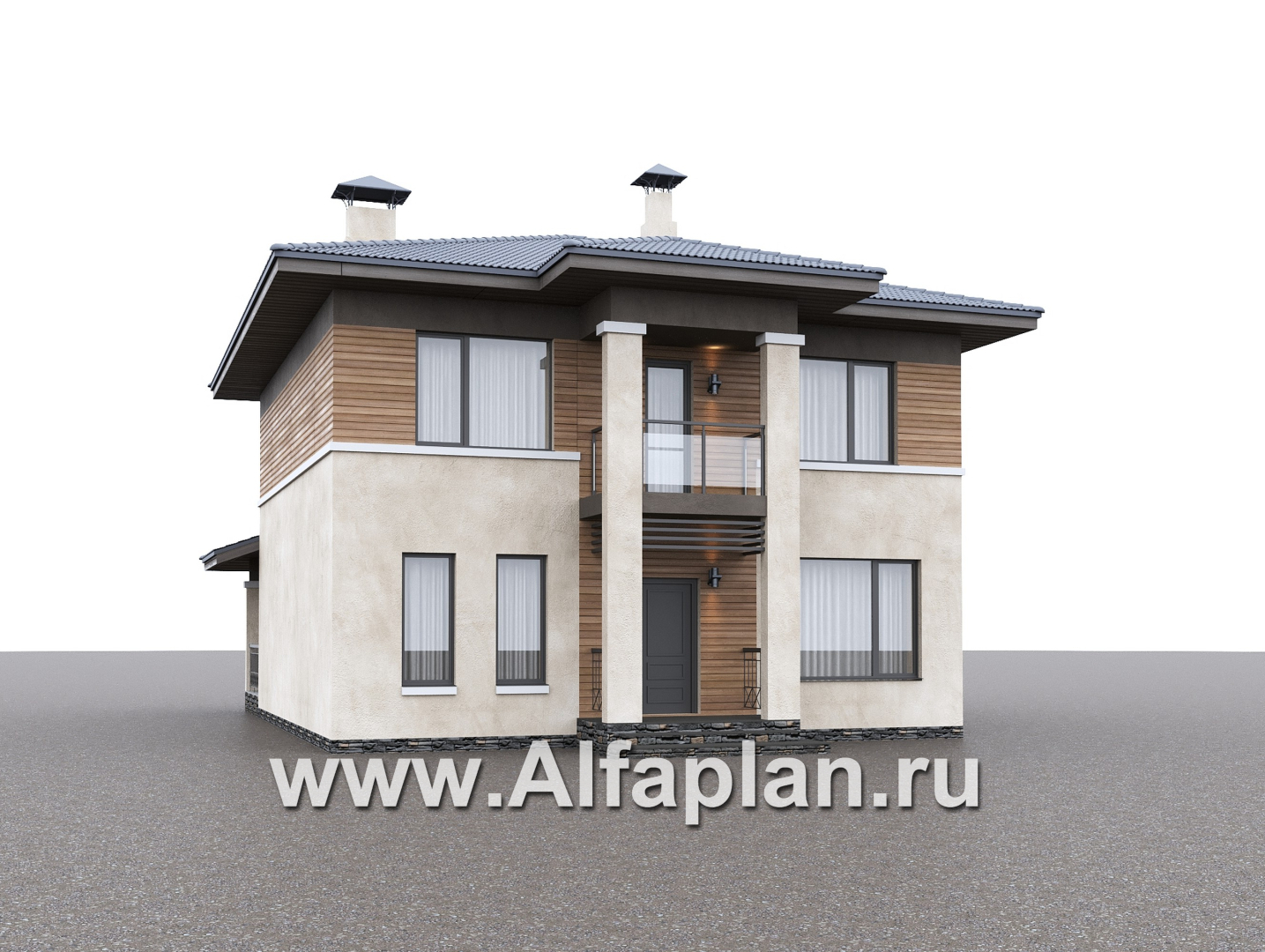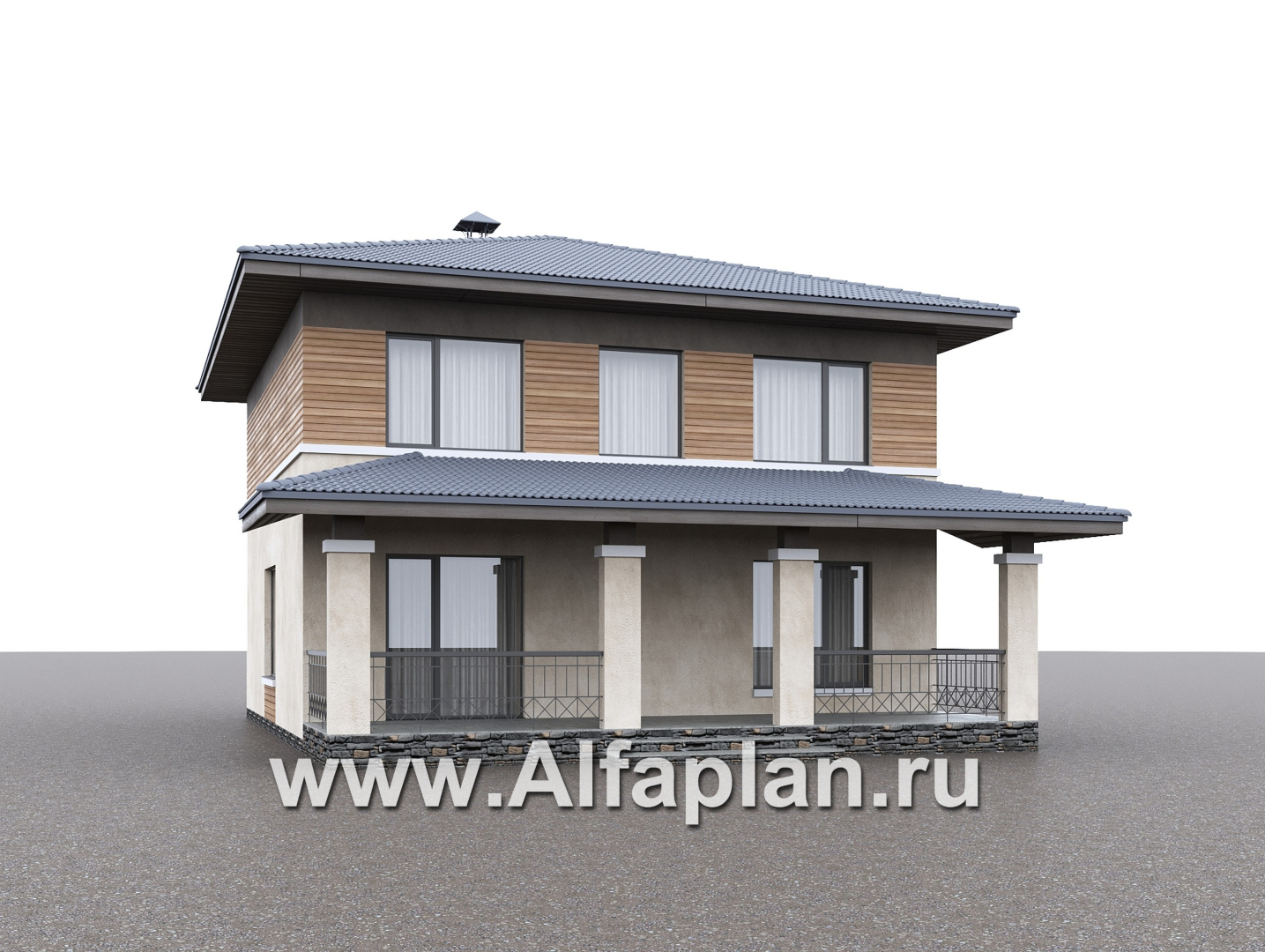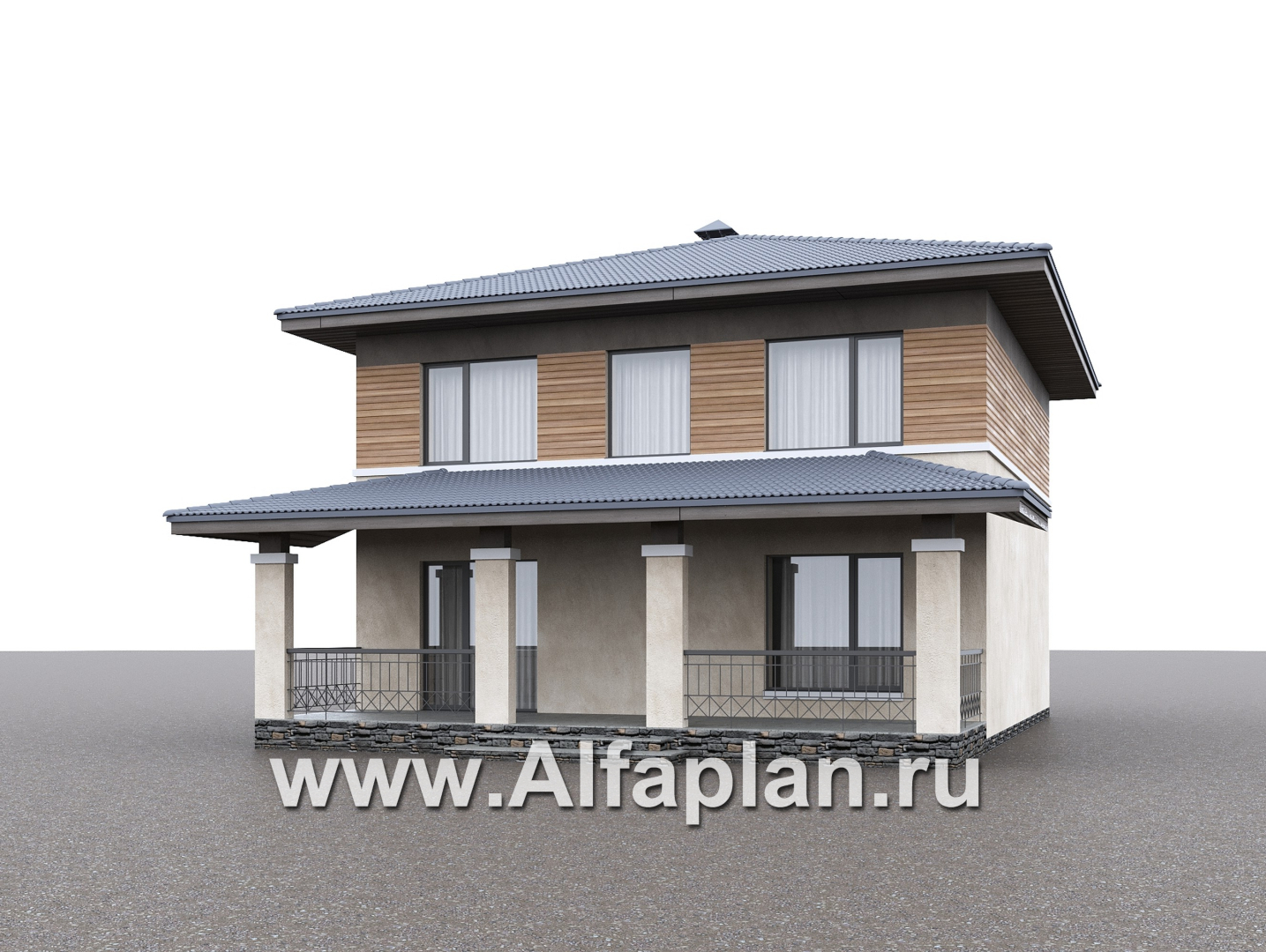 «Невада» - проект двухэтажного дома из газобетона, с террасой, в стиле Райта