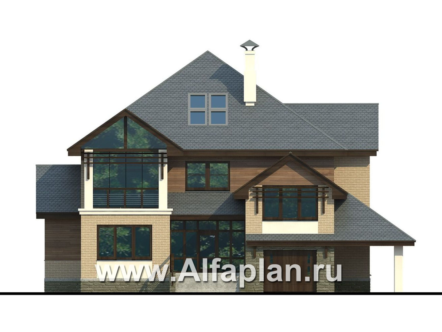 107A-S «Современник» - проект двухэтажного дома, с гаражом, с сауной, вторым светом гостиной, с мансардой в чердаке