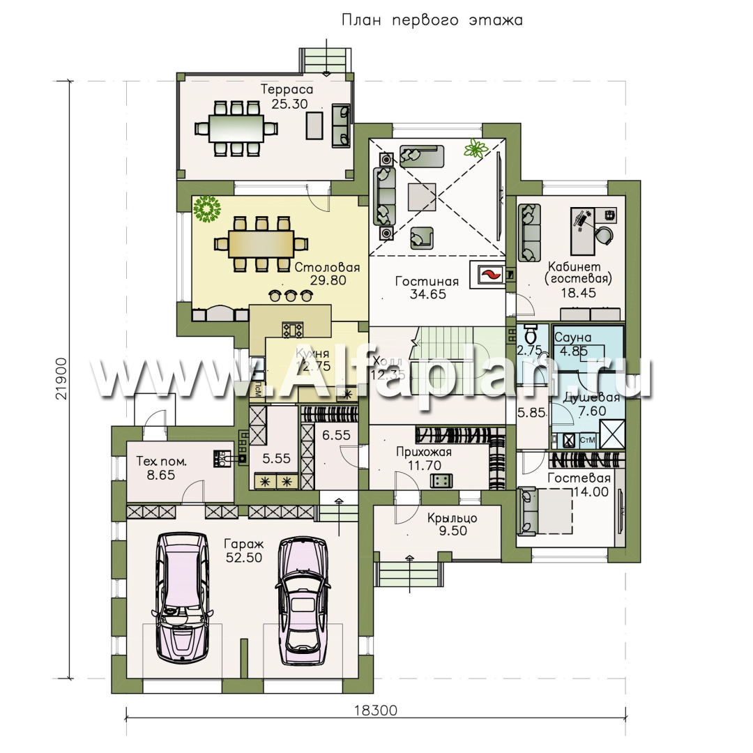 710B-S «Неман» - проект двухэтажного дома, особняк с двусветной гостиной, с террасой, с гаражом на 2 авто