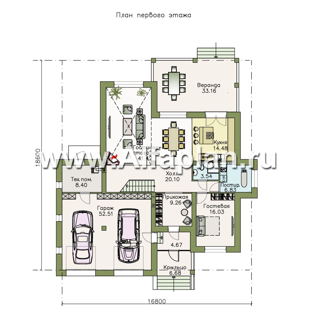 | Габаритные размеры дома | без террас и наружных лестниц | 17.9 м x 17.3 м, ширина гостиной 4.0 м |
