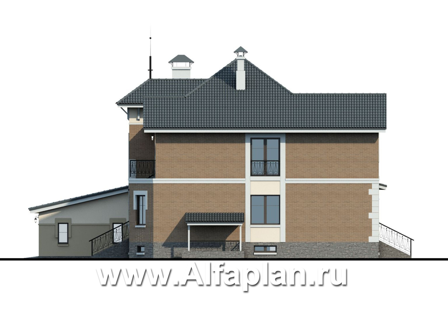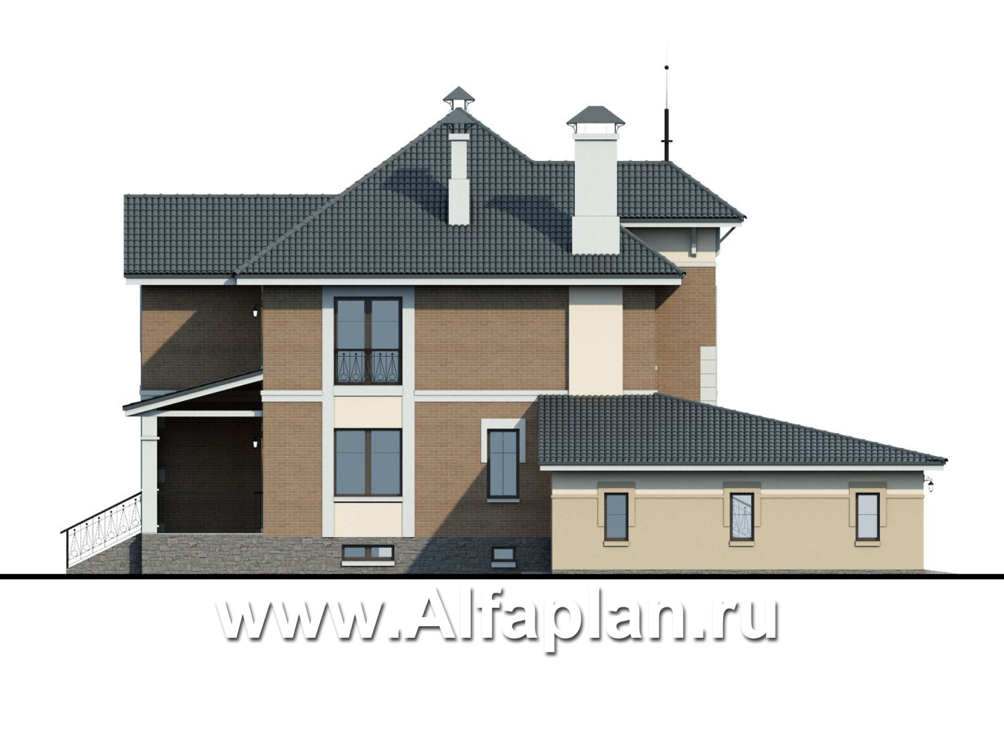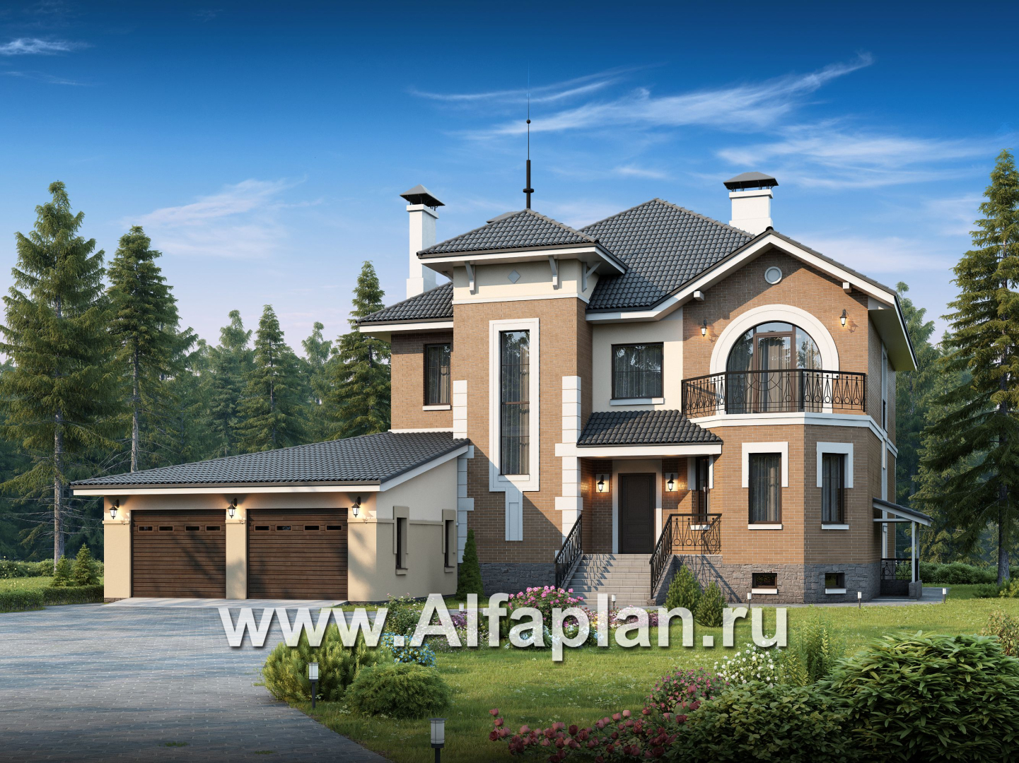 137ВС «Феникс плюс» – яркий проект коттеджа представительского класса в три этажа, сочетающий в своем облике классику и современность. Он буквально начинён не только всем необходимым для комфорта, но и имеет ряд дополнительных удобств.