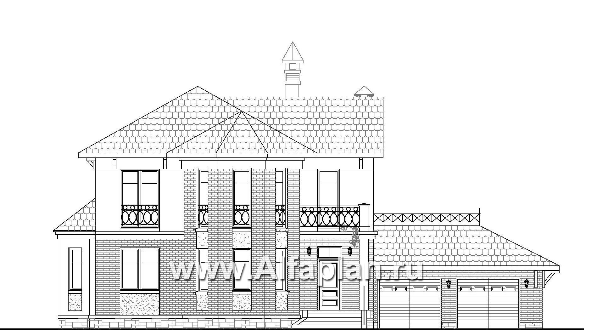 111E-S «Классика» - проект двухэтажного дома с эркером и с балконом, с гаражом на 2 авто