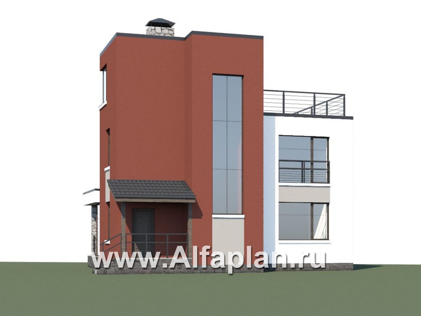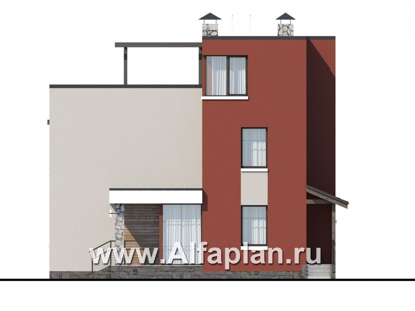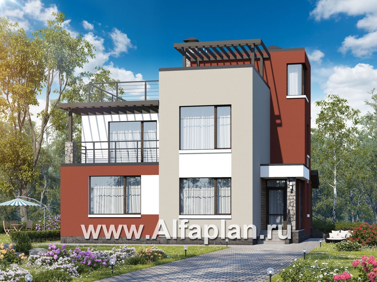 357A-S «Виток спирали» - проект двухэтажного современного дома, плоской эксплуатируемой крышей, в стиле минимализм