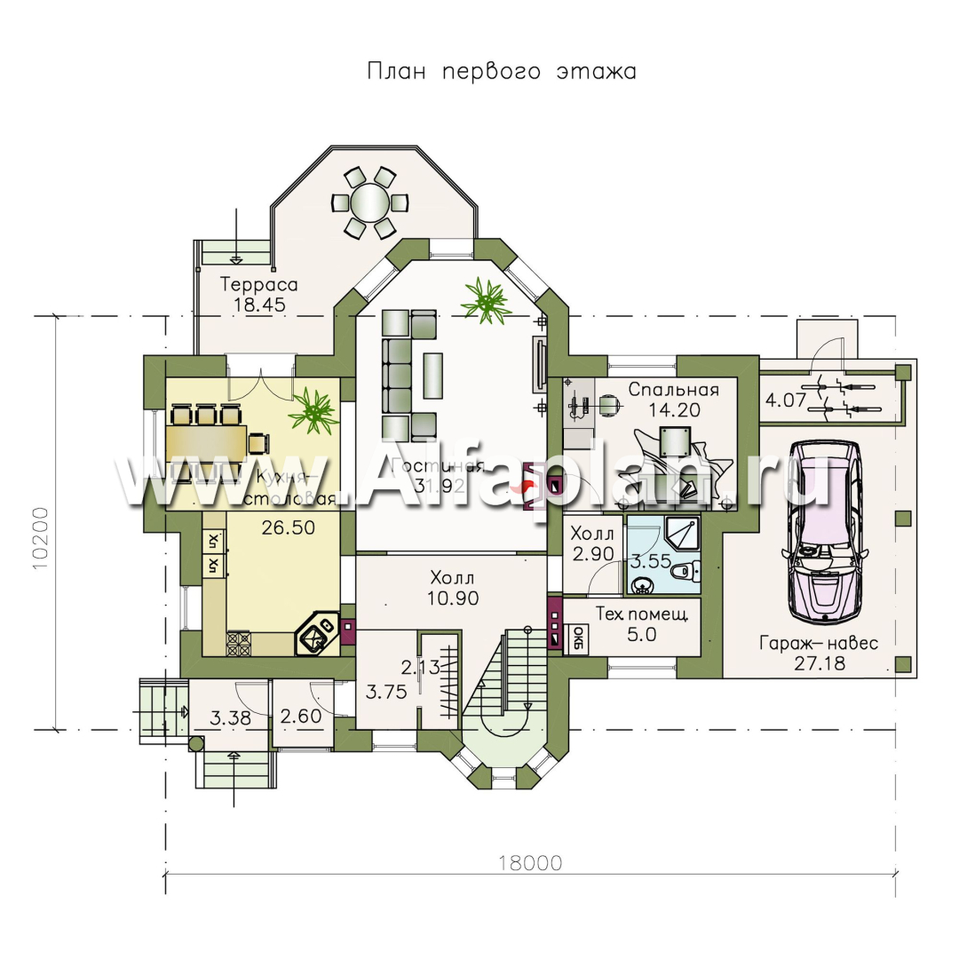 132B «Монплезир» - проект двухэтажного дома,с эркером и с террасой, навес на 1 авто