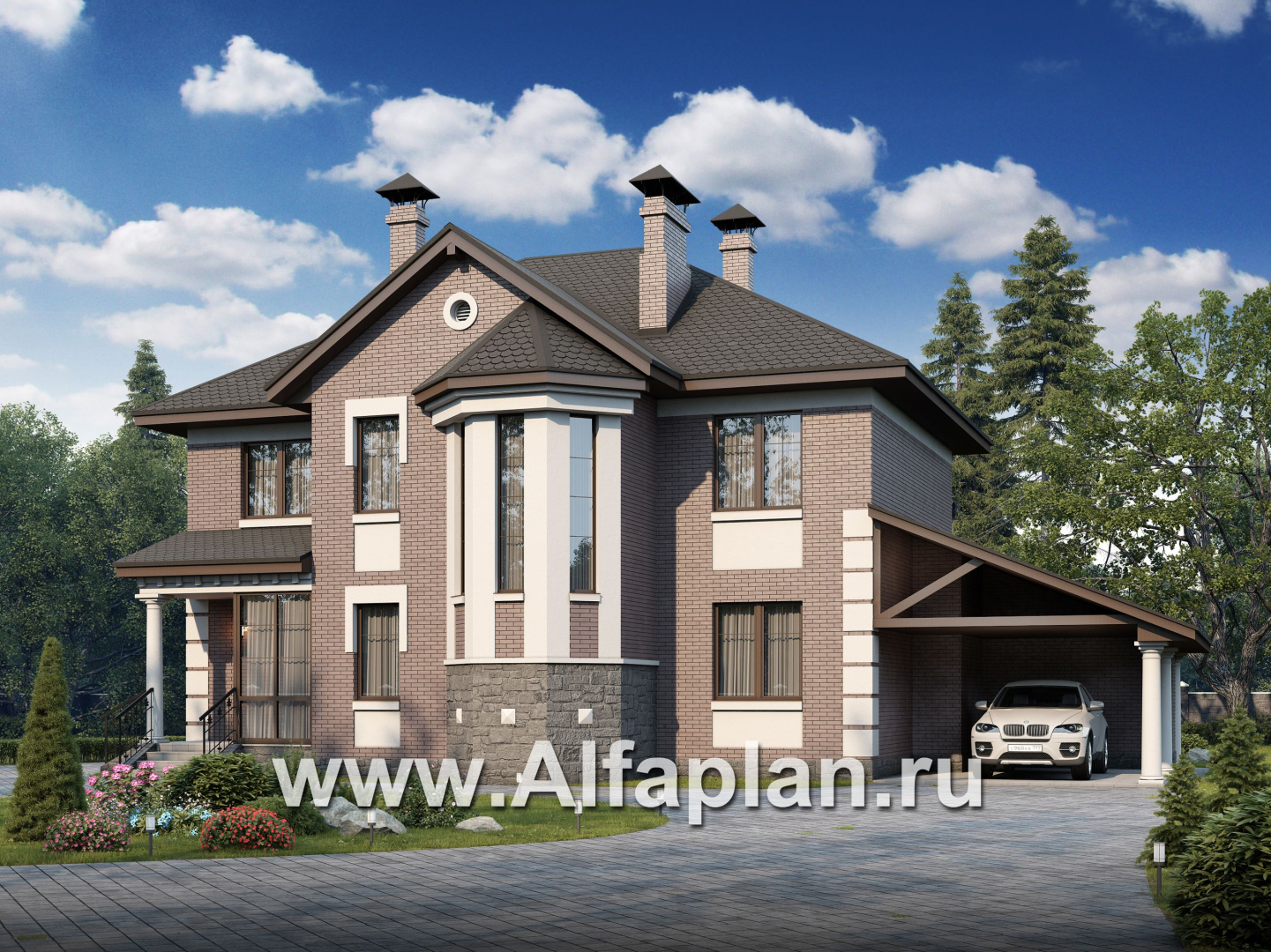 «Монплезир» - проект двухэтажного дома,с эркером и с террасой, навес на 1 авто