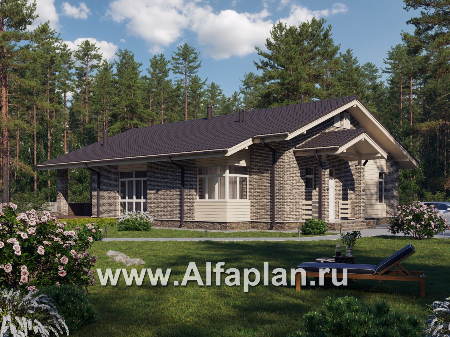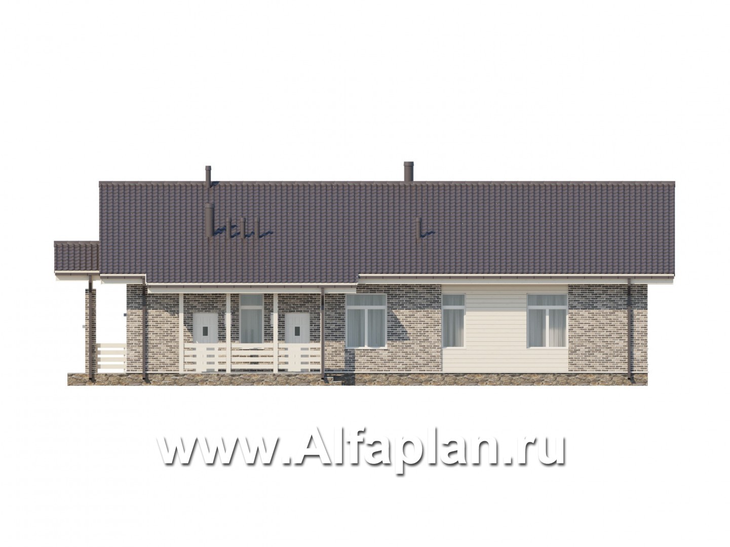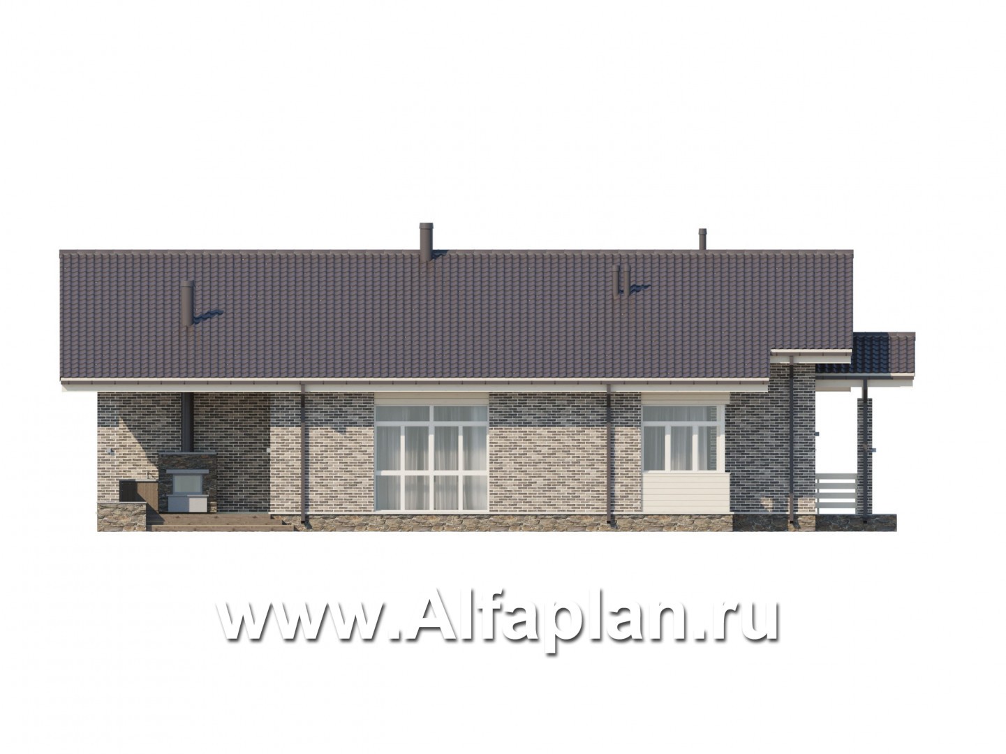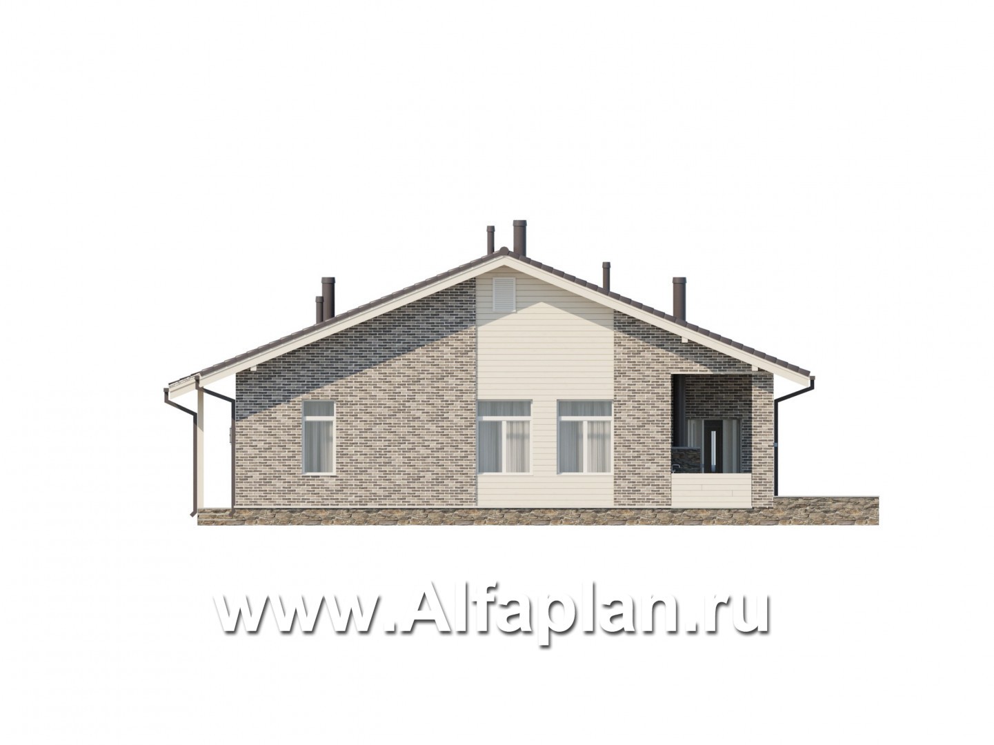 Проект одноэтажного дома из газобетона, с террасой и сауной