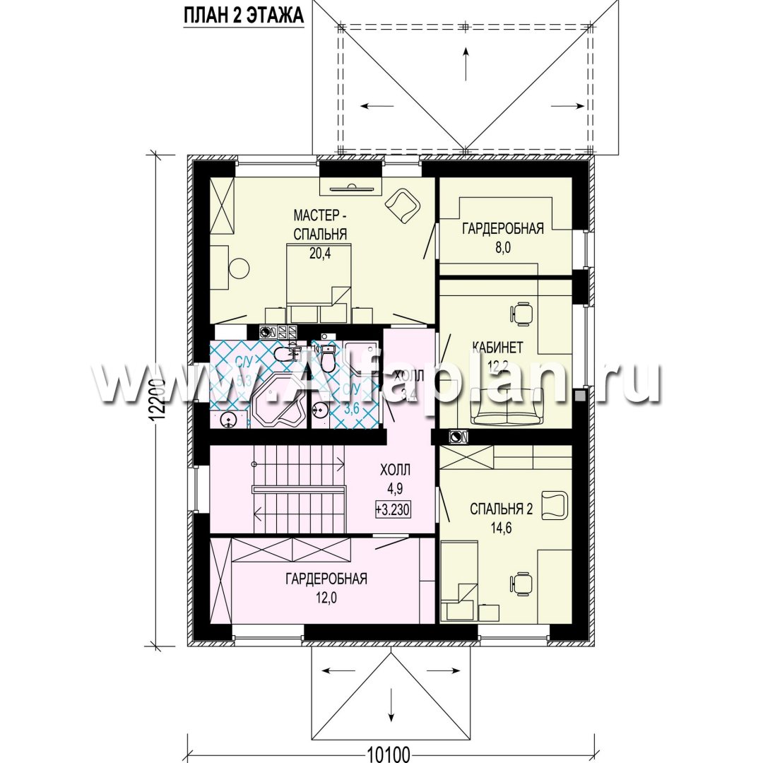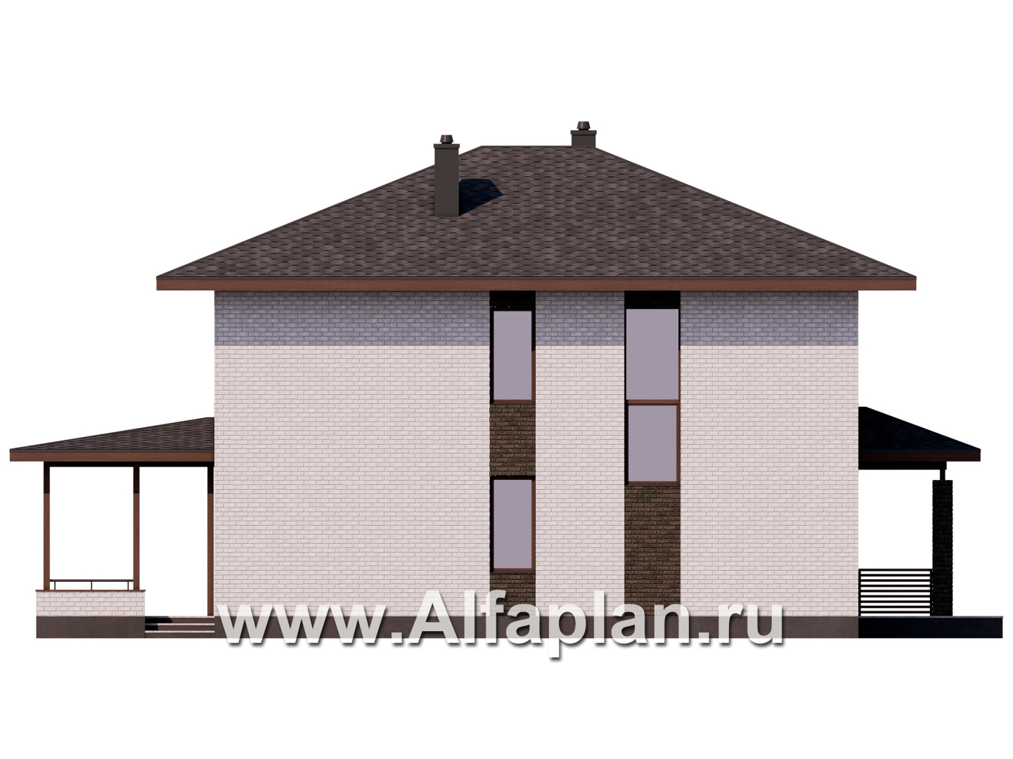 G99 Проект двухэтажного коттеджа, планировка с гостевой на 1 эт, с террасой, в стиле минимализм