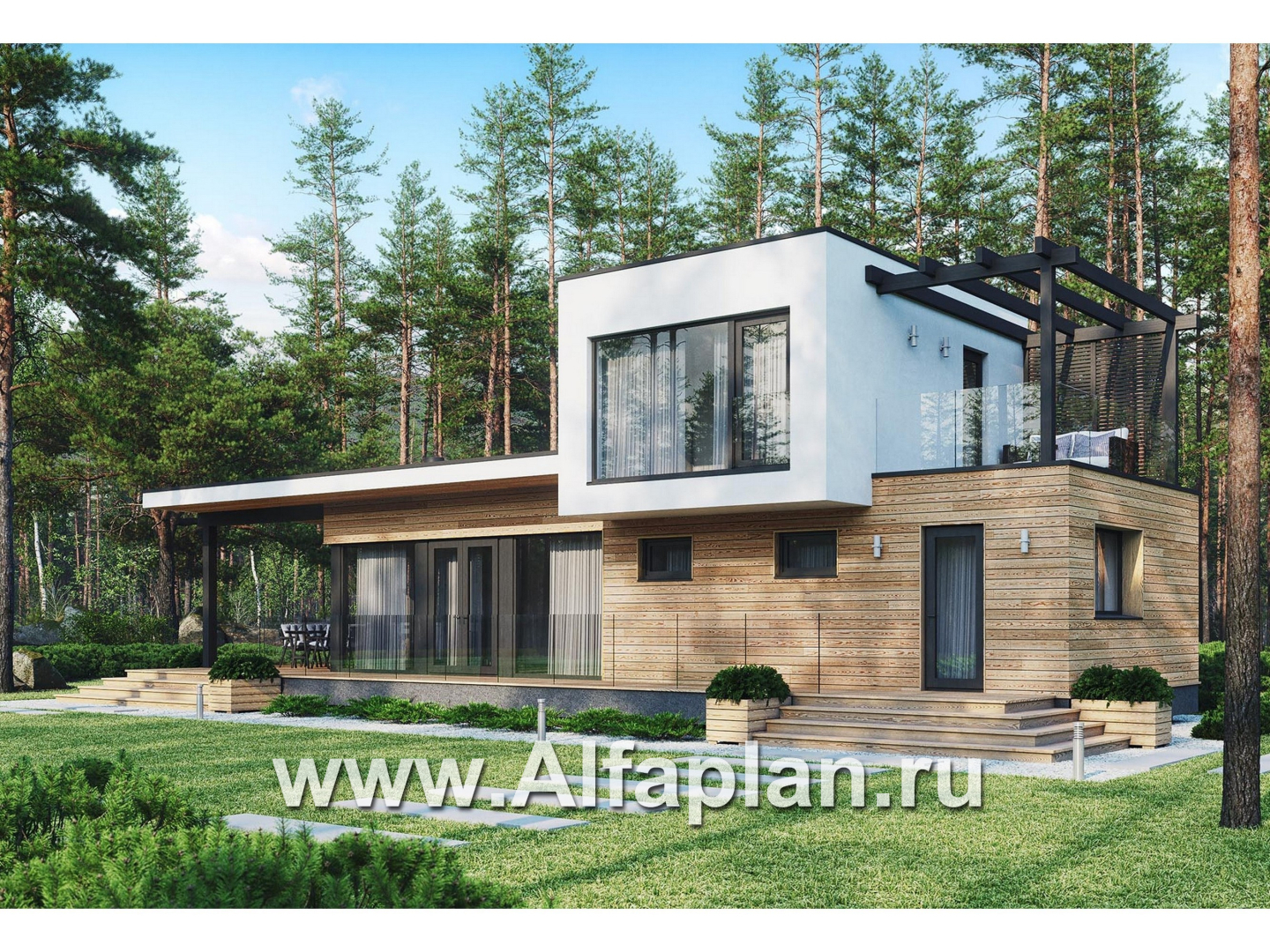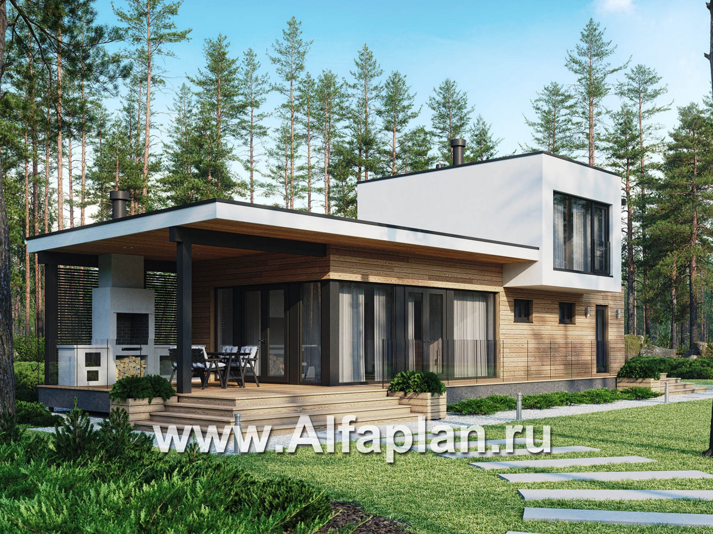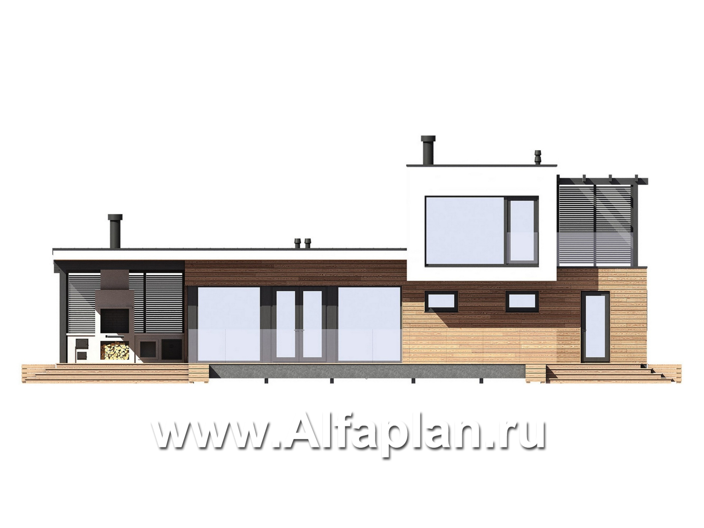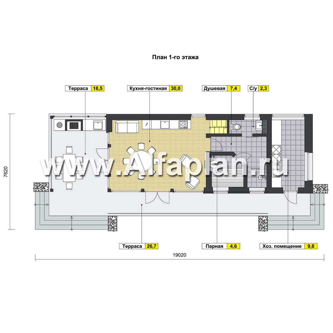 AV209 Проект бани, дома для отдыха в стиле хай-тек, с террасой и с плоской крышей